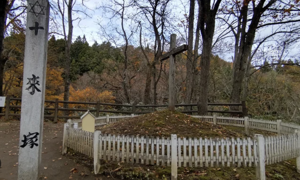 新郷村のキリストの墓と呼ばれる場所には、二つの土饅頭が並んでいる。向かって右側がキリストの墓「十来太郎大天空(とらいたろうだいてんくう)」、左側が弟イスキリの墓とされている。
